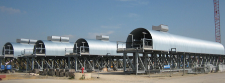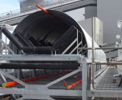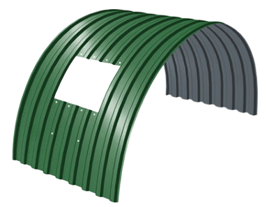 - Возможность создания пролетов больших размеров: Арочная конструкция позволяет создавать укрытия с большими пролетами без использования дополнительных опор. Это обеспечивает свободный доступ к конвейерной линии для обслуживания и ремонта, а также позволяет оптимизировать пространство внутри укрытия.